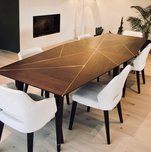 L'étagère Ligne s'intègre parfaitement dans des intérieurs contemporains et habille le long pan de mur, apportant ainsi du dynamisme de par des longueurs d'étagères différentes en tôles pliées et de fines filantes verticales.